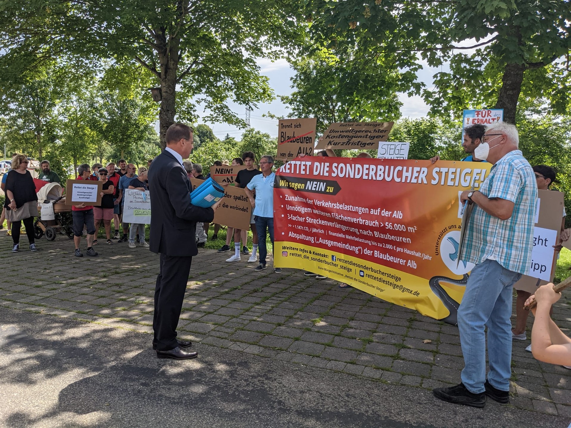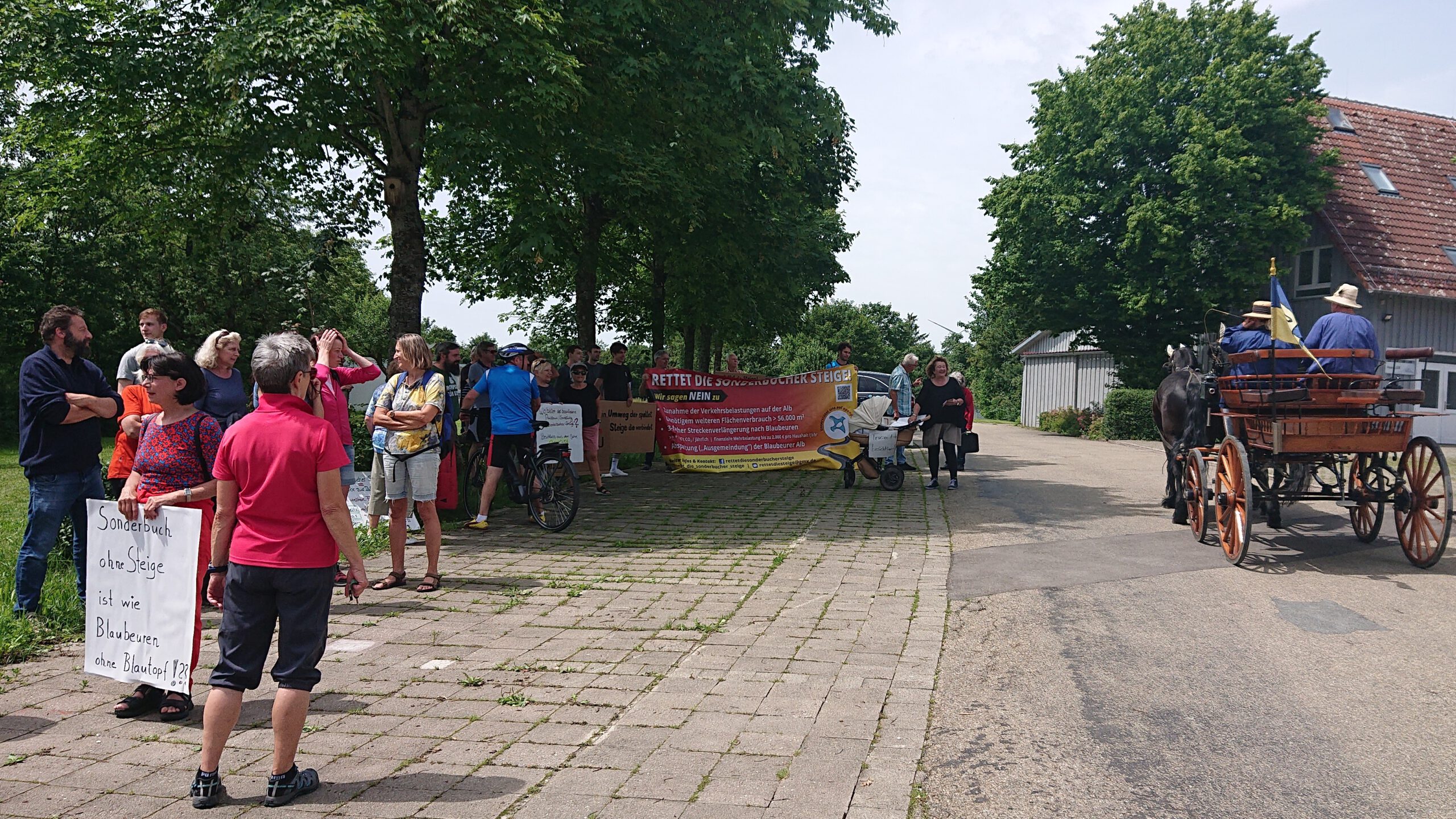 Sonderbuch, Die Hessenhöfe, Asch, Wippingen, Gerhausen, Blaubeuren und Berghülen waren bei der heutigen Demo vertreten. Mit Pferdefuhrwerk, zwei Riesenbannern und vielen vielen Plakaten wurden die Kreistagsabgeordneten zur Sitzung von uns in Empfang genommen.