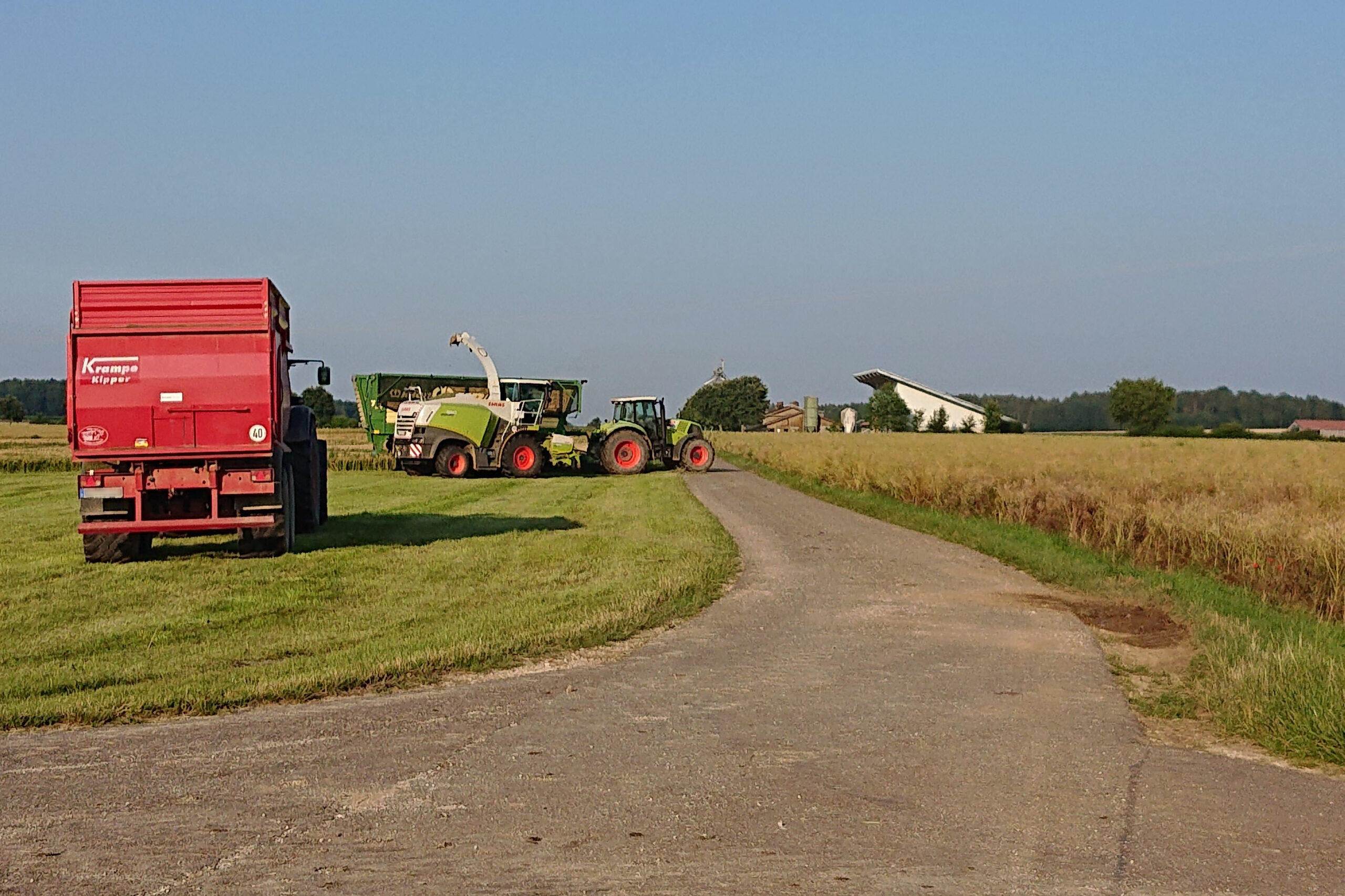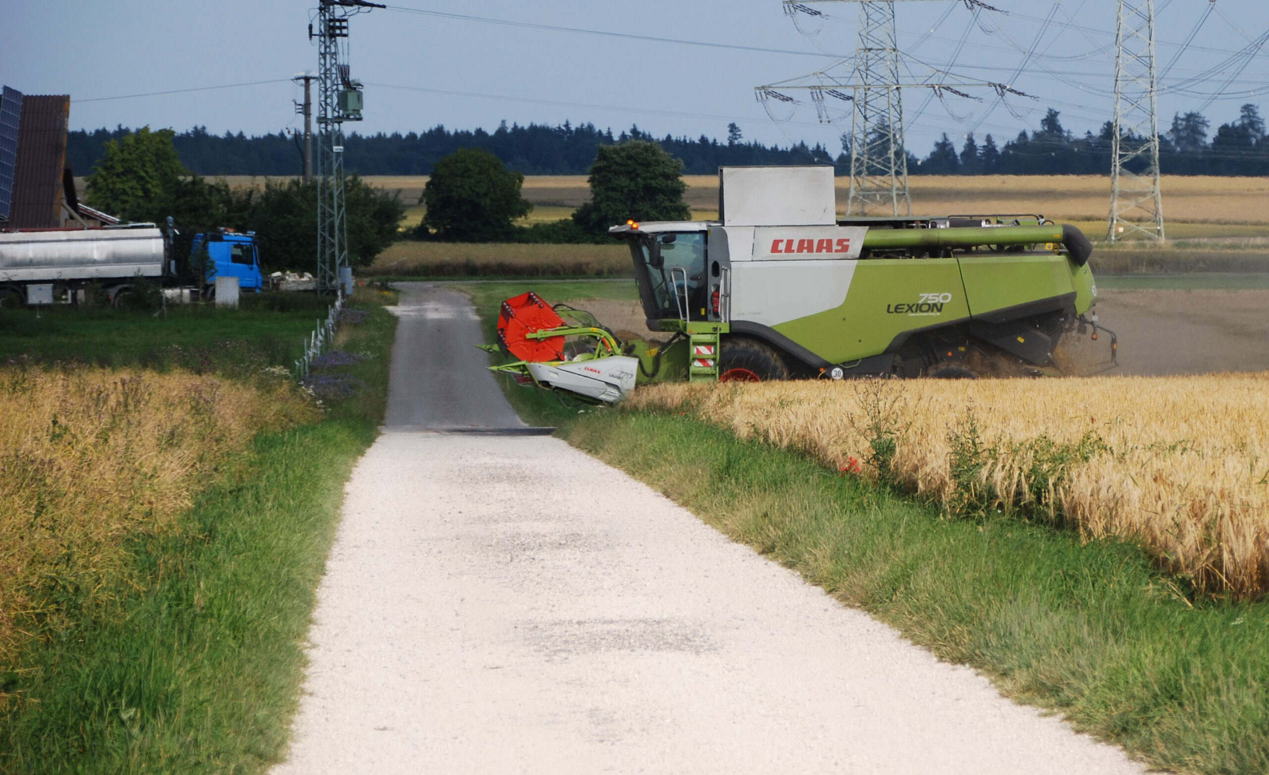 Das Ab- und Anbauen des Schneidwerks bei einem Mähdrescher, was notwendig wird, wenn man sich künftig nur noch über die Kreisstraße zu seinen Feldern bewegen kann, erfordert je nach Modell eine halbe Stunde Zeitaufwand. Das ist viel in der Erntezeit, wo jede Minute mögliche Dreschzeit genutzt werden will um die Ernte von hochwertigem Lebensmittel und Tiernahrung zu gewährleisten. -Nicht selten ist das ein Wettlauf gegen drohende Gewitterwolken am Himmel.